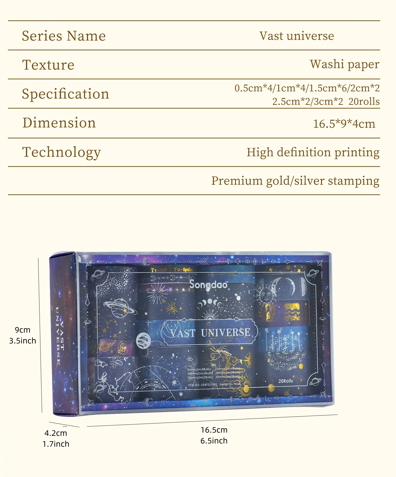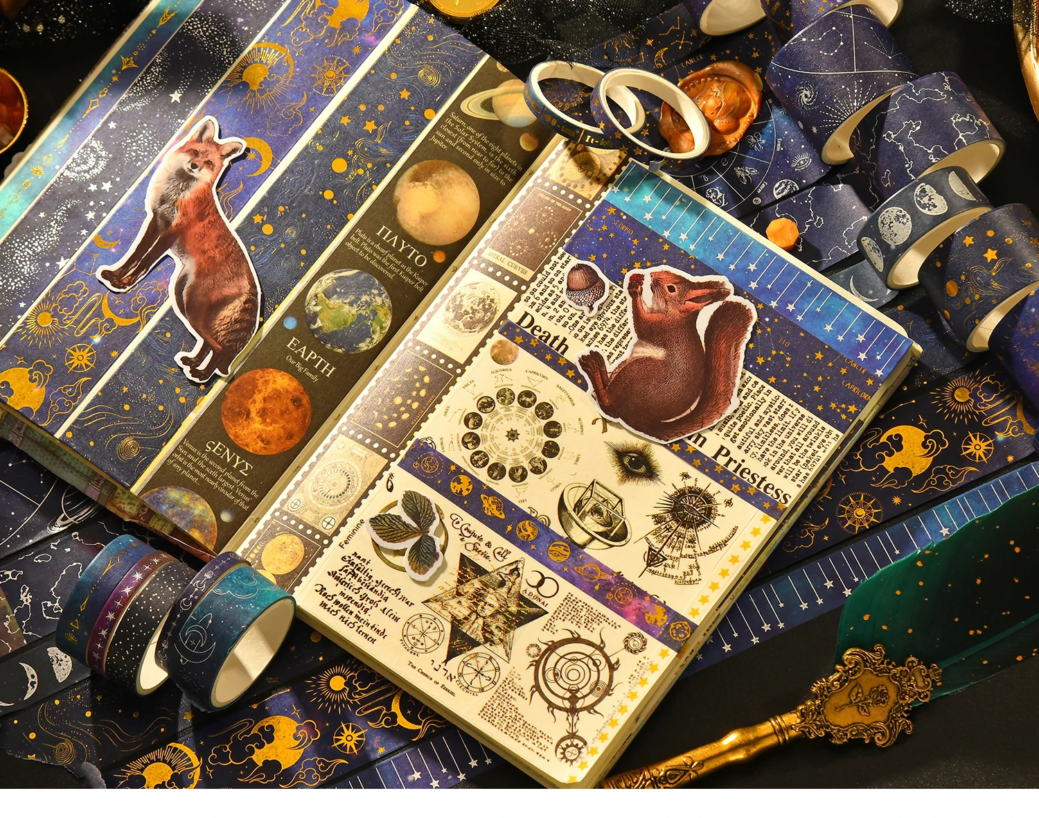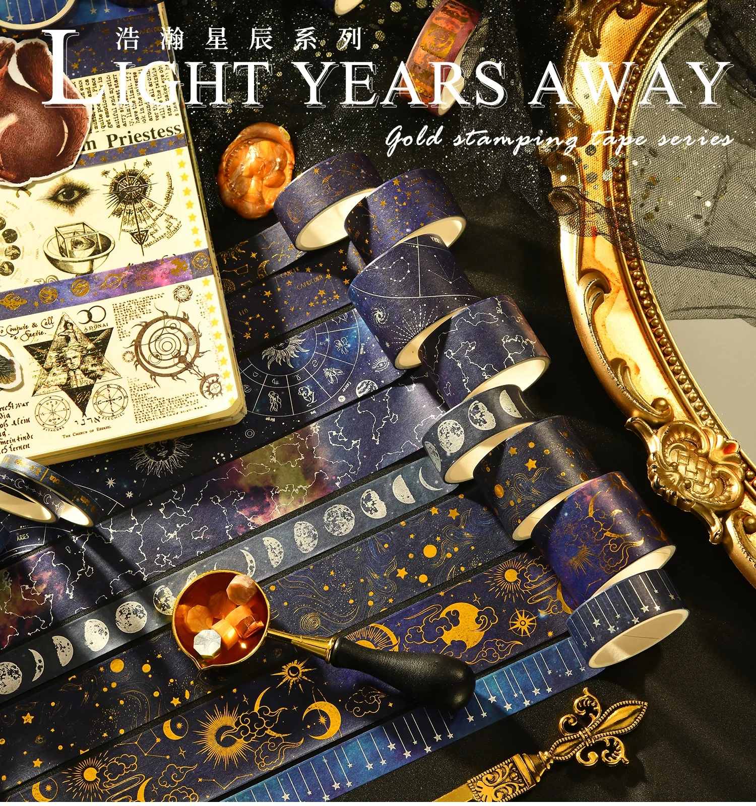 20 Rolls Vast Universe Washi Tape Set Galaxy Star Moon Gold Silver Stamping Adhesive Masking Tapes Decoration Stickers A7603
