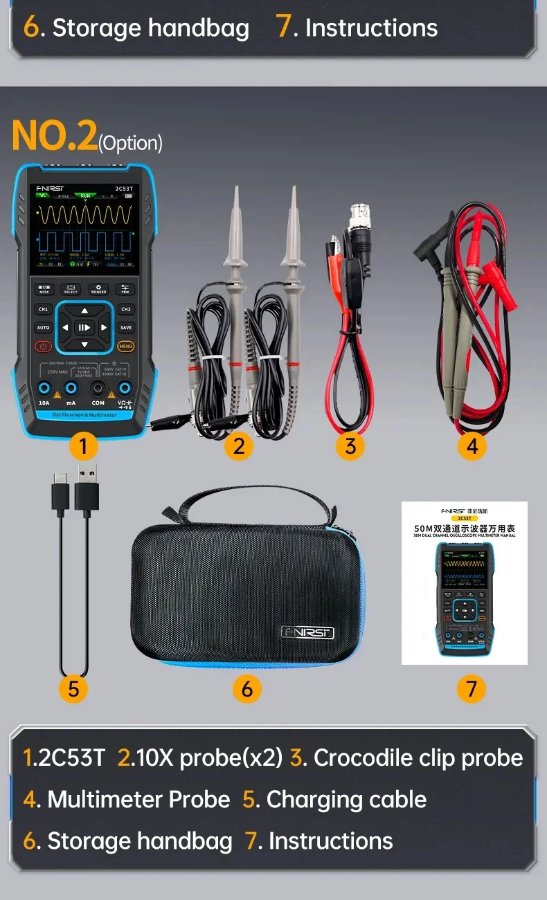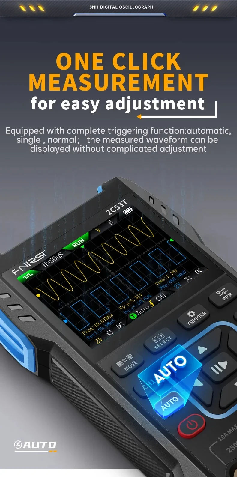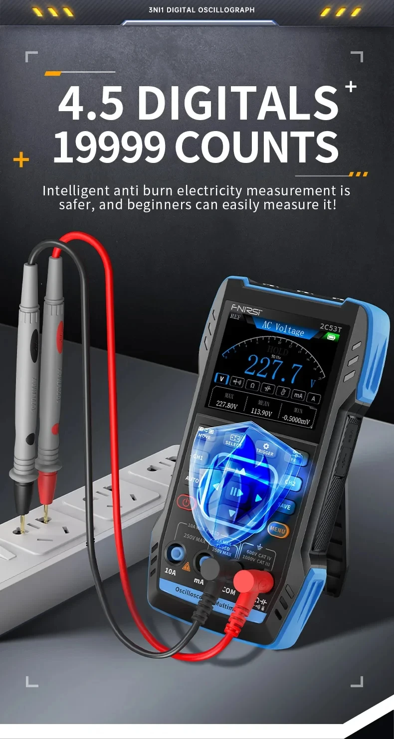 FNIRSI 50MHz Handheld 3 in 1 Dual Channel Automotive Digital Oscilloscope Multimeter Signal Generator 2C53T Upgrade Tools
