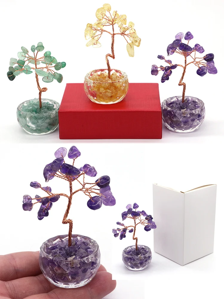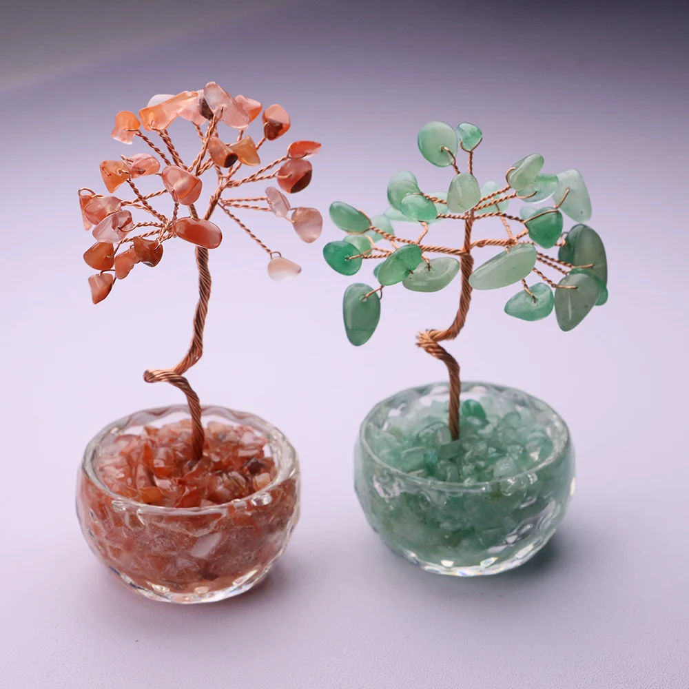 7 Chakras Tree of Life Decoration Rose Natural Chip Crystal Handmade Healing Luck Money Trees Feng Shui Home Office Ornament